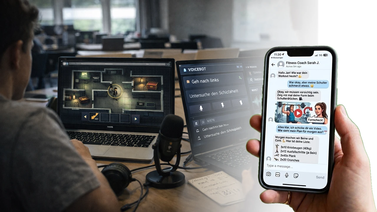 • Voicebots verstehen: Du lernst, wie Spracheingabe, Sprachausgabe und „Aktionen ausführen“ zusammenarbeiten, damit ein Voicebot zuverlässig reagiert.